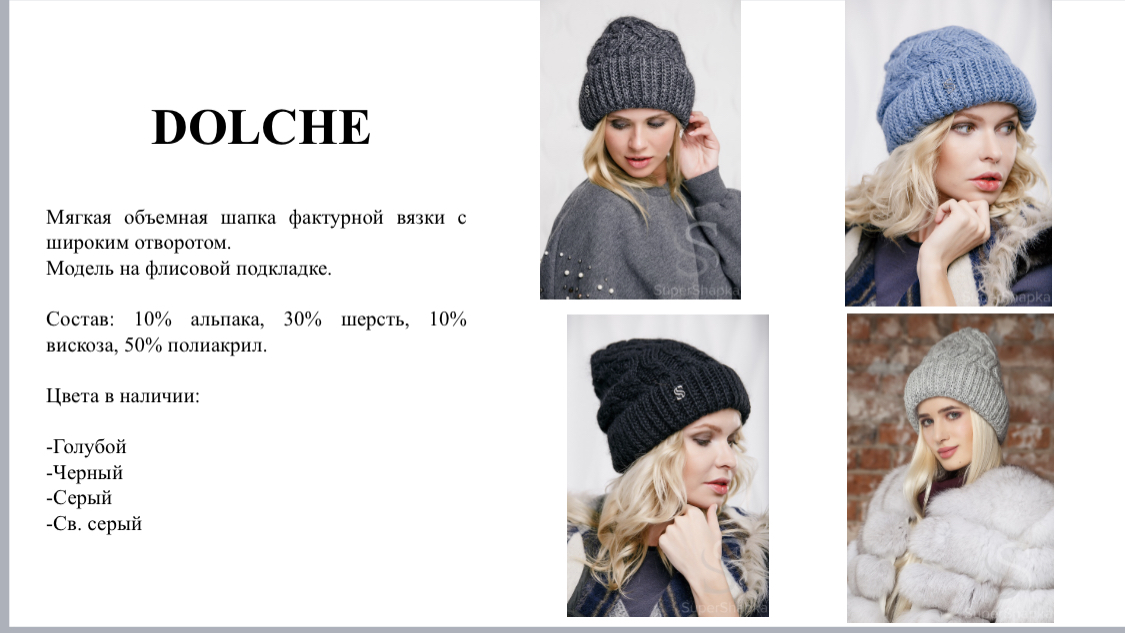 DOLCHE. шапки -sale