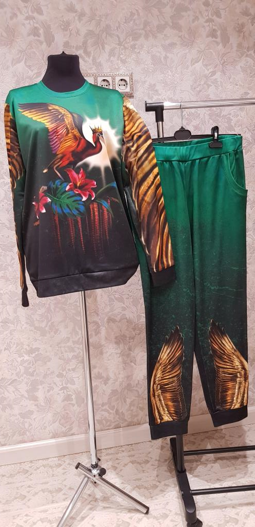 костюм красивого зелёного цвета с рисунком