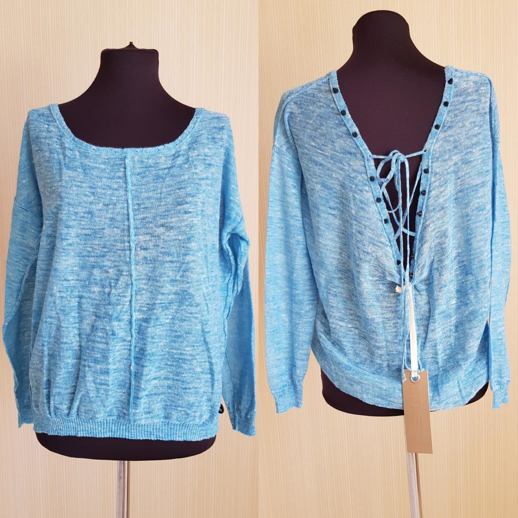 А834 Италия, джемпер с красивой спиной, голубой меланж