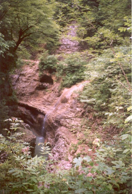 Водопадики впадающие в речку Курджипс. Дорога с узкоколейкой, по которой мы шли, проходит над ними.03 декабря 2004 г.