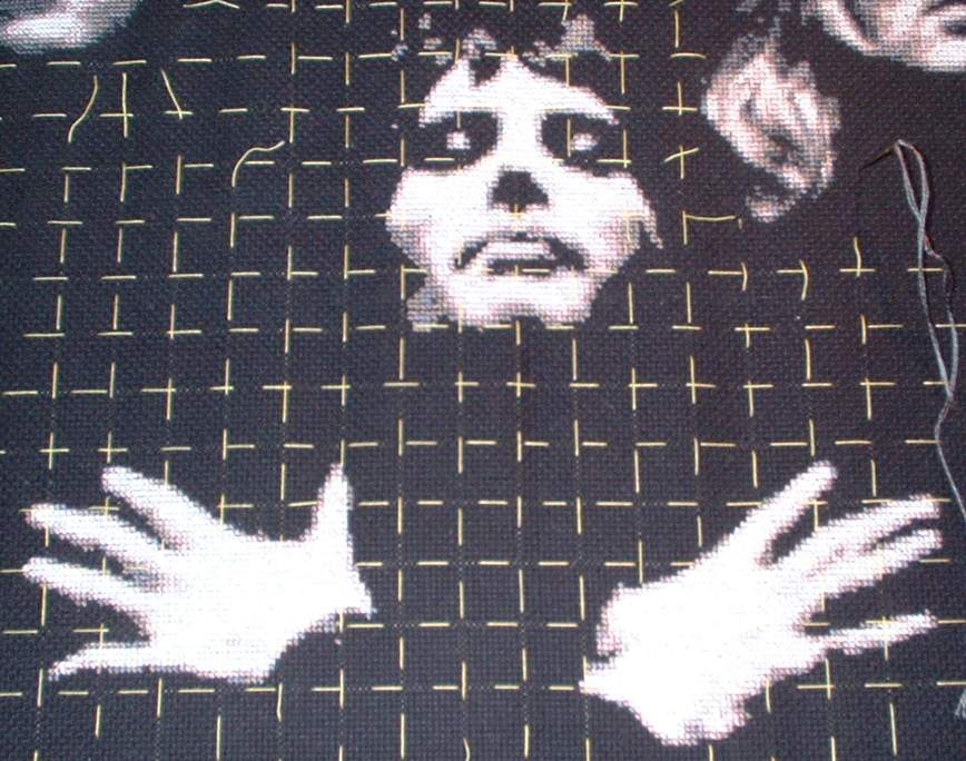Only 2 colours left to stitch. It looks like it will be ready for my hubby's burthday. The back of the work is looking messy by my standards.15 июня 2005 г.