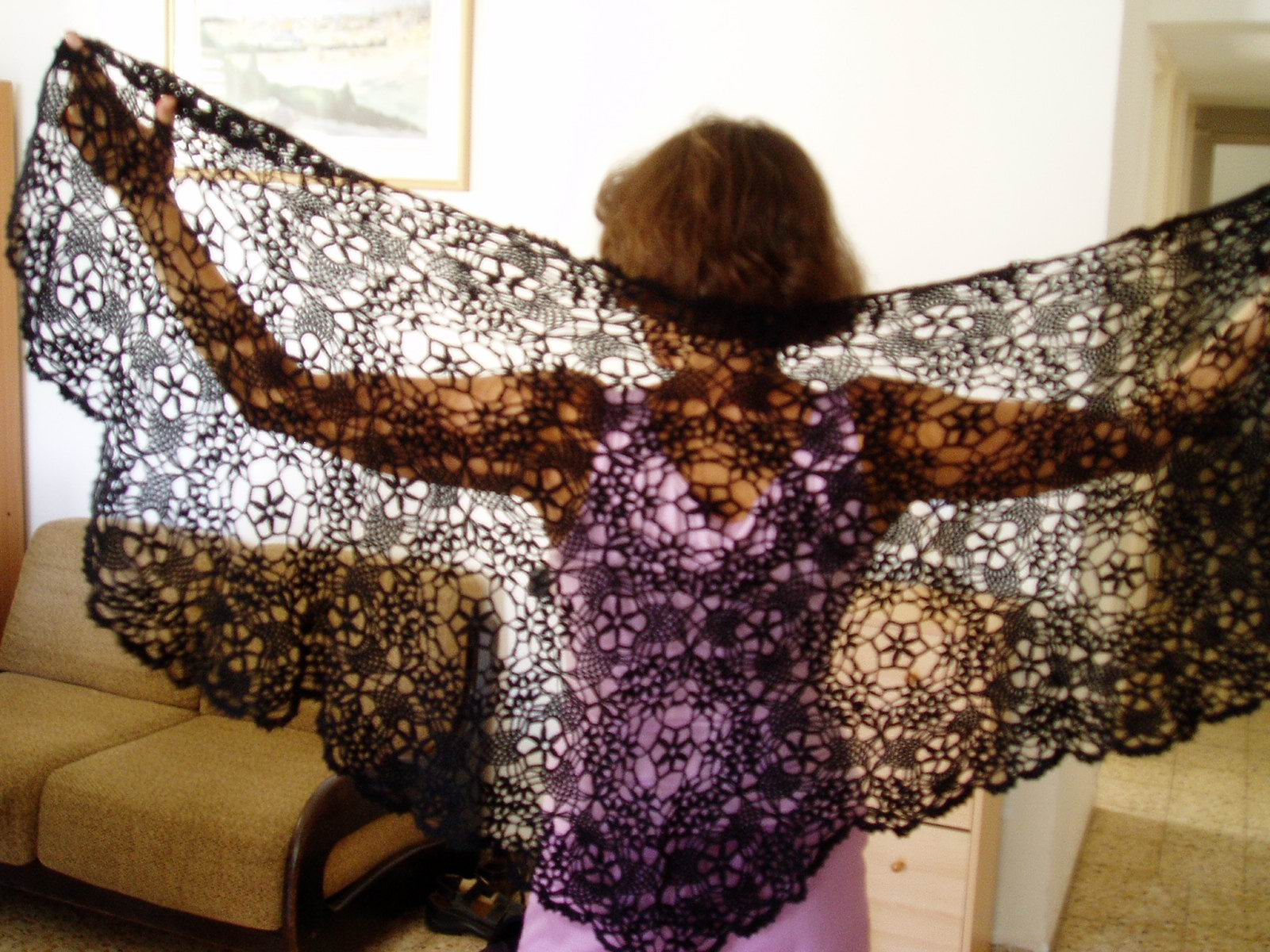Шерсть 32/2 в 2 сложения, крючок номер 2.5. Не слишком мелко вязать, а полотно выходит воздушное.19 июня 2005 г.
