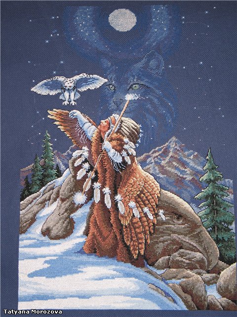 Счетный крест.Вышито по набору по заказу любимого крестника. Думаю, что подарок понравится. На фото светятся белые протяжки на небе, но это только на фото.18 декабря 2005 г.