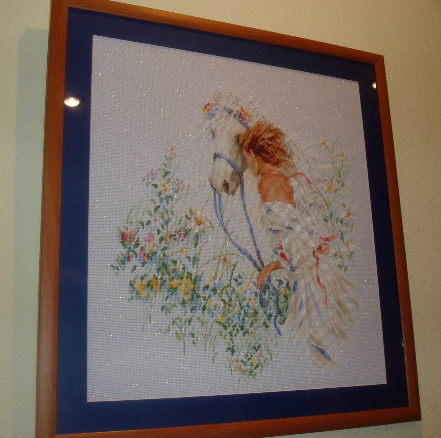 Вышито по подбору. Канва с люрексом. Собственно говоря ради нее и был выбран именно этот сюжет.В данный момент поспарту заменено на двойное светлое. Синее было ужасно((30 декабря 2005 г.