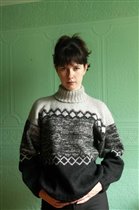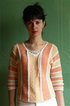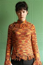 Модель из Сабрина №6 за 2004 год, пестрый пуловер со шлицами на рукавах, пряжа...