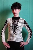 Модель из Сабрина №5 за 2002 год, пуловер с короткими рукавами, пряжа...