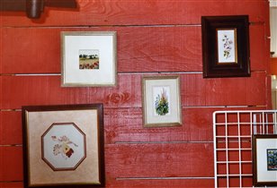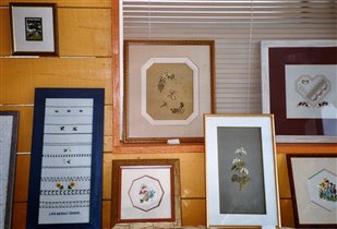 Миниатюры,вышитые различными украшающими швами,внизу -художественная гладь