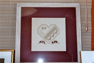 Различные техники были использованы для вышивки этого чудесного сердечка:счётный крест,хардангер...