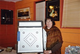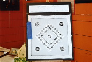 Эта небольшая скатерть в стиле Хардангер была представлена на конкурсе в США и получила премию...