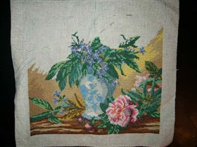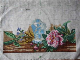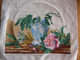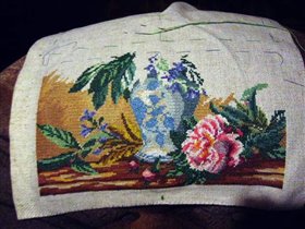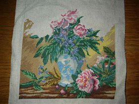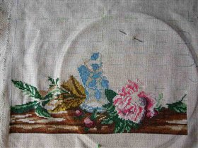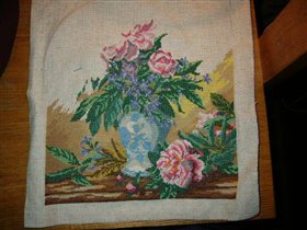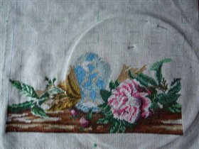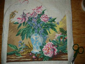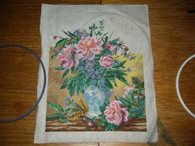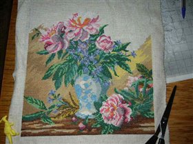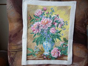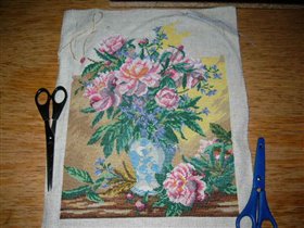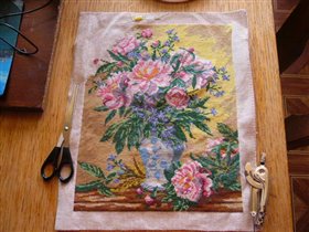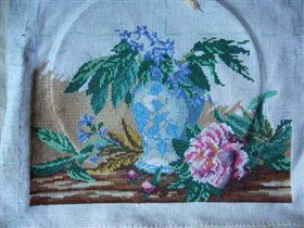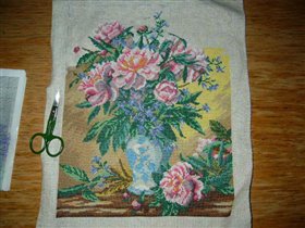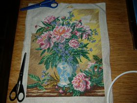 процесс вышивания пионов