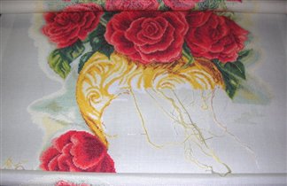полу крест снизу вокруг розы готов. Вот и ваза прорисовывается.