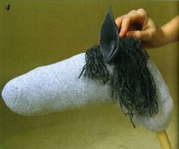 здесь по фото можно понять последовательность работы по изготовлению лошадки на палочке из носка. Делается все достаточно просто и быстро