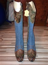 Весенне-осенние сапоги,лён и натуральная кожа(есть небольшой деффект на фото видно!)совершенно...