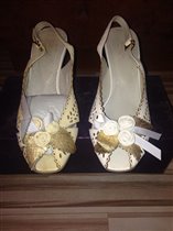 Туфли фирмы Спаркинг,размер 37 и 39 ,натуральная кожа,форма лодочки,цвет белый с золотистыми...