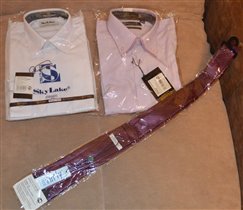 Рубашки СкайЛайк - св.сиреневая р.35, белая р.34 и галстук Клевер-ли